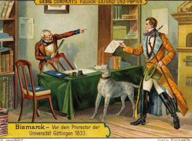 Семи лет от роду родители отправили его в Берлин, где Отто сменил три гимназии, не показав никаких выдающихся (или хотя бы выше среднего) способностей. Из всех наук юношу заинтересовала лишь история политики, изучение которой он продолжил в университете Гёттингена. Вырвавшись из школы, он предался прелестям студенческой жизни — выпивкам с друзьями, влюблённостям и, как следствие, дуэлям. Больше двадцати раз схватившись с противниками, Бисмарк был ранен лишь единожды, зато эффектно — нечестный, по мнению Отто, удар оставил ему большой шрам на щеке, добавив мужественности и без того брутальному облику. В итоге бретёру пришлось распрощаться с Гёттингеном и, хотя диссертацию по политической экономии Бисмарк всё-таки защитил в другом университете, планы на дипломатическую службу оказались разрушены: брать на службу дуэлянта со шрамом во всю щёку прусский МИД отказался.