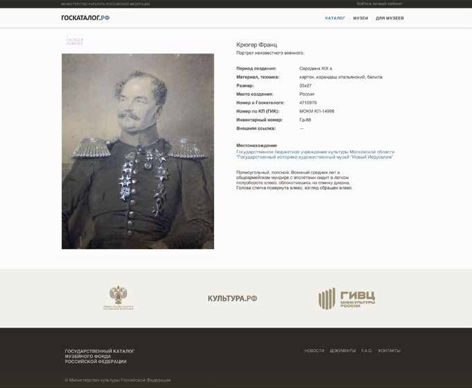 В сентябре 2017 года в «Дилетанте» я рассказывал о портрете генерала Ивана Тяжельникова кисти Репина, который ещё в 1974 году правильно определил выдающийся учёный Владислав Михайлович Глинка. Но хотя его статья была напечатана в солидных «Трудах Государственного Эрмитажа», картина более сорока лет продолжала висеть в музее под именем моряка Николая Мещерякова. Этот антирекорд скоро побьёт рисунок Франца Крюгера, который до сих пор значится в музее и Госкаталоге «неизвестным военным», хотя ещё в 1983 году опубликована атрибуция Глинки, что это генерал Семён Алексеевич Юрьевич. С рисунка есть даже подписанная литография.