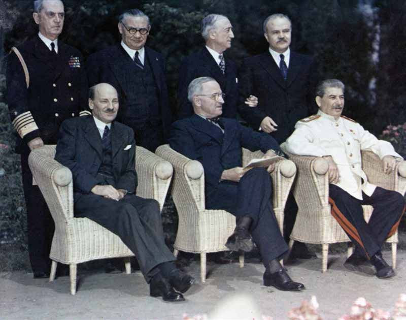 Проходившая с 17 июля по 2 августа 1945 года Потсдамская конференция «большой тройки» (теперь в неё входили Гарри Трумэн, ставший президентом США после смерти Франклина Рузвельта, Иосиф Сталин и Уинстон Черчилль, в ходе конференции заменённый новым британским премьер-министром Клементом Эттли) определила совместные политические и экономические принципы обращения с Германией. Союзники договорились, что в период оккупации страна должна рассматриваться как единое экономическое целое, пока не будет учреждено центральное германское правительство. Великие державы устанавливали в Германии свою верховную власть, которая должна была осуществляться главнокомандующими вооружёнными силами СССР, США, Великобритании и Франции, — каждым в своей зоне оккупации по инструкциям своих правительств, а также совместно по вопросам, затрагивающим Германию в целом. Как орган верховной власти победителей был учреждён Союзнический контрольный совет (СКС). В него входили маршал Георгий Жуков (СССР), генерал Дуайт Эйзенхауэр (США), фельдмаршал Бернард Монтгомери (Великобритания) и генерал Жан де Латр де Тассиньи (Франция).