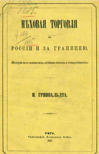 Ещё в конце XIX века в Риге вышел справочник «Меховая торговля в России и за границей П. Гринвальдта». Скорее всего, его автор был владельцем собственного предприятия в Петербурге, по крайней мере, в столице работал «Дом меха П. М. Гринвальдт». Автор книги отмечает, что русские купцы торговали мехами уже примерно с XI века, продавая их и в Грецию, и в Хазарию (часть территории современных Казахстана, Приазовья и Поволжья), и в Сирию, и в Волжскую Булгарию, и в города Ганзейского союза (Северо-Восточная Европа).