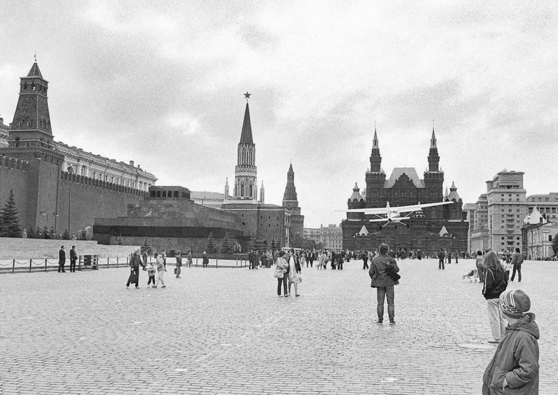 Примерно в 19 часов 28 мая 1987 года, в День пограничных войск СССР, над Красной площадью неожиданно появился лёгкий одномоторный самолёт «Сессна». Сделав три круга, он сел на Большой Москворецкий мост, едва не задевая крыши автомобилей, и накатом доехал до собора Василия Блаженного. Из самолёта вышел пилот и стал раздавать автографы удивлённым посетителям главной площади страны. Это продолжалось около часа, после чего он был задержан.