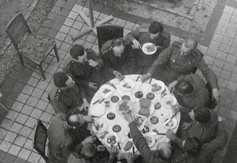 Илья Аронс, приписанный к киногруппе 1-го Белорусского фронта, попал в эпицентр штурма Берлина, снимал уличные бои и первым делом устремился к рейхсканцелярии — там же Гитлер! В бункер он ворвался одним из первых, и тут его ждало операторское разочарование: темно, недостаточно света, чтобы снимать. Помещение вроде столовой, рядком сидят немецкие офицеры, высокие чины. И вдруг — «бах»! — и какая-то вспышка, один офицер упал, за ним другой. Они стрелялись, завидев русских…