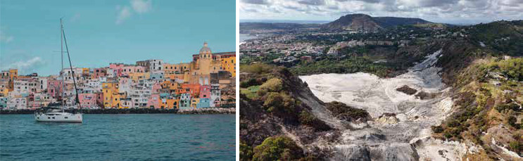 Впрочем, не он, а другие вулканы были нашей целью. Мы бросили якорь в Мизенской бухте прямо напротив одноимённого озера. Мы оказались на западной окраине Флегрейских полей. Campi Flegrei, то есть с древнегреческого «пышущие», «пылающие», — это вулканический район к западу от Неаполя, состоящий из десятков кратеров, фумарол и «дышащей» земли. Так их называют сегодня, так же называли и греки, которые чуть менее трёх тысяч лет назад основывали здесь свои колонии.