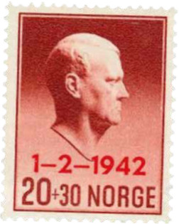 В 1942 году почта Норвегии выпустила марку с профилем премьер-министра страны и надпечаткой: 1 февраля 1942 года. Эту дату Видкун Квислинг посчитал днём своего триумфа. Наконец-то глава фашистской партии «Национальное единение» получил, как он считал, всю полноту власти, став министром-президентом. Но получил он не так много, а потерял всё — в первую очередь честь, репутацию и моральный облик.