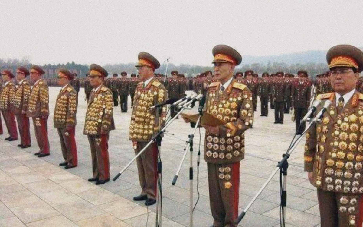Публикуя эту фотографию северокорейского генералитета, средства массовой информации обычно напоминают, что КНДР не воевала со времён корейской войны.