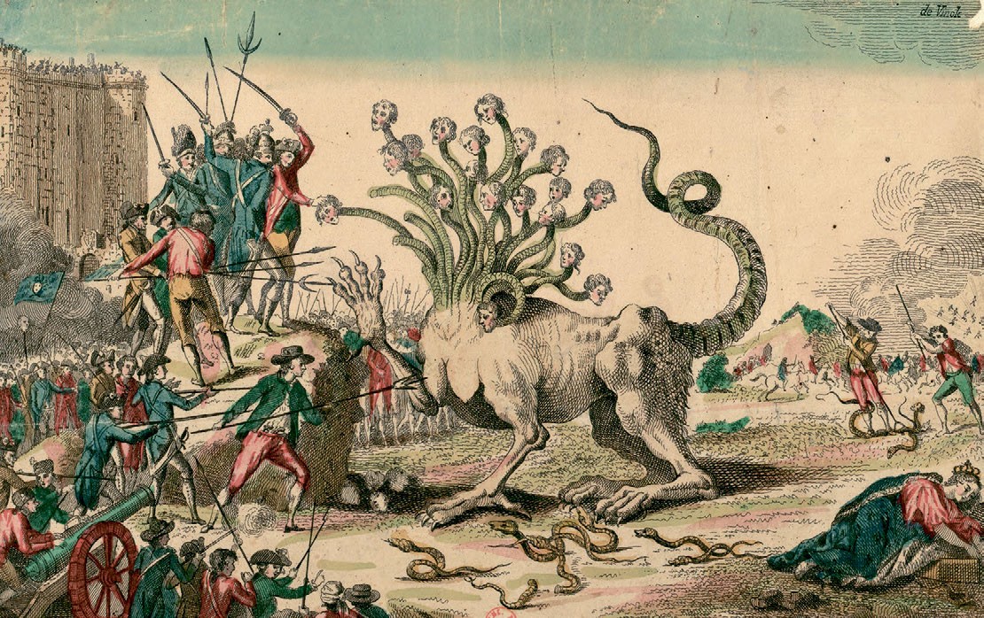 Новые власти винили во всех проблемах врагов революции, в первую очередь аристократов. На карикатуре они изображены в виде злобной гидры, у которой вместо одной отрубленной дворянской головы вырастают две.