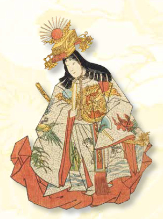 О Дзингу мы знаем в первую очередь из древнейших японских летописей — «Кодзики», «Нихон сёки» и «Фудоки», созданных в VIII веке. Она была женой императора Тюая и с ранних лет отличалась «дарованиями и мудростью, и по красоте превосходила обычных людей». К сожалению, её супруг ослушался богов и рано скончался. Здесь версии у источников расходятся. В одних текстах он погиб во время войны с племенами кумасо, в других — неожиданно заболел и умер у себя во дворце после того, как пренебрёг божественным посланием. Но все сходятся на том, что верховная богиня солнца Аматэрасу велела Тюаю отправиться с походом на Запад, а он этому указанию не последовал, за что и поплатился.