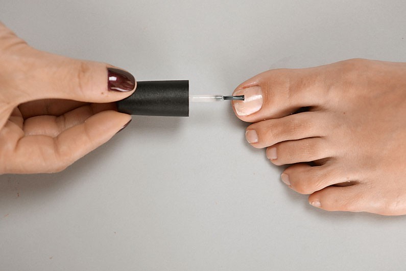 1. Выровняйте поверхность ногтевой пластины, нанеся на нее прозрачную базу.