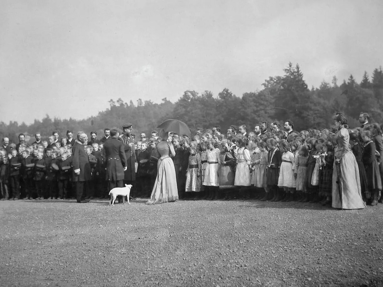 «Жили мы в Царском… <…> Однажды, гуляя по парку, я решила убежать от англичанки и хорошенько напугать ее моим исчезновением. <…> Вдруг откуда-то выскочила на меня с громким лаем большая черная собака; я, конечно, испугалась, хотела бежать, оступилась, упала и залилась от страха горькими слезами. <…> Когда я пришла в себя, то узнала цесаревича Александра Николаевича, которого мы постоянно видели в парке и на музыке и хорошо знали. <…> После этого я много раз встречала в тенистых аллеях парка цесаревича, всегда с его собакой Милордом, с которым после первого моего неудачного знакомства завязалась у меня самая тесная дружба. Отправляясь на прогулку, я постоянно брала с собой для Милорда сахару или же бисквит, и, бывало, как только сеттер завидит меня, бросается ко мне со всех ног» Анна Боголовская. «Из воспоминаний о детстве Александра III»
