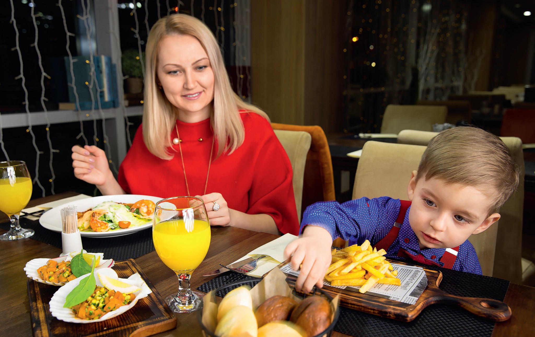 К услугам постояльцев в отеле работает ресторан «Парк-кафе», в котором проходят завтраки по системе «шведский стол», деловые обеды и ужины по меню, в том числе детскому. Для маленьких гостей есть игровой уголок, где ребенок может весело провести время, находясь в зоне вашего внимания.