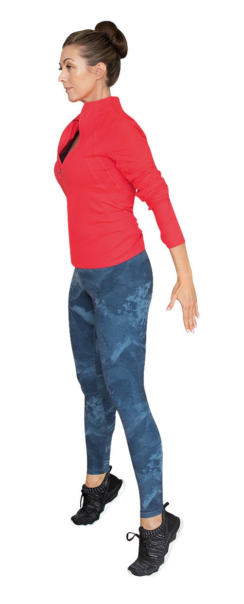 2. Из исходного положения поднимитесь на полупальцы, сохраняя сильный центр. Выполните это упражнение 10–15 раз. Следите за дыханием, выдох с усилием.
