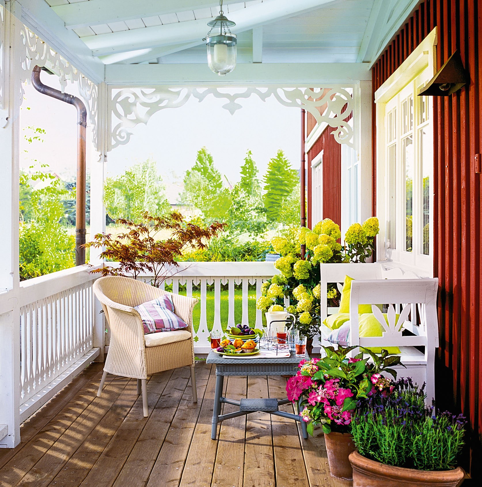 Летом границы нашего дома расширяются за счет открытой веранды, патио, мини-лужайки у входа. Давайте посмотрим, как можно декорировать это пространство