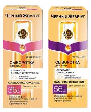 Новые сыворотки в линии «Черный Жемчуг. Самоомоложение» способны решать определенные задачи в каждом возрасте. Так, сыворотка «Активатор сияния и упругости 36+» выравнивает тон, «Активатор лифтинг-эффекта 46+» придает коже плотность, а «Активатор омоложения 56+» работает на восстановление. Новые сыворотки – не только самостоятельный продукт, но и уникальный активатор, в 2 раза усиливающий действие крема.