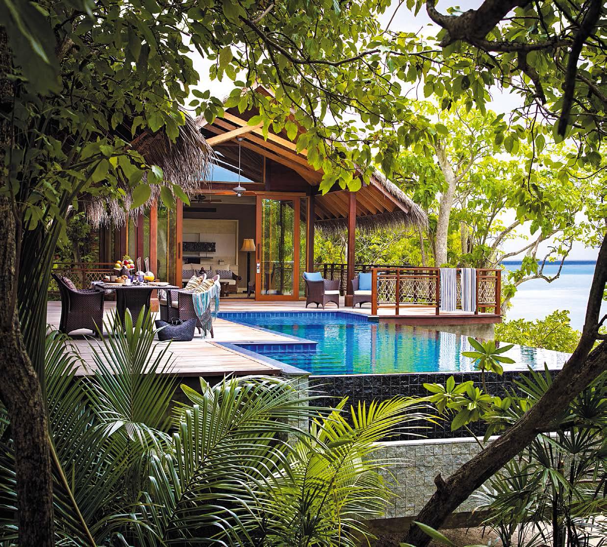 Едва ступив на причал, вы понимаете, что оказались внутри открытки – вокруг пальмы, бирюзовая вода, белоснежный песок, а у вас в руках белые цветы франжипани и кокосовое молоко – приветствие от отеля.
