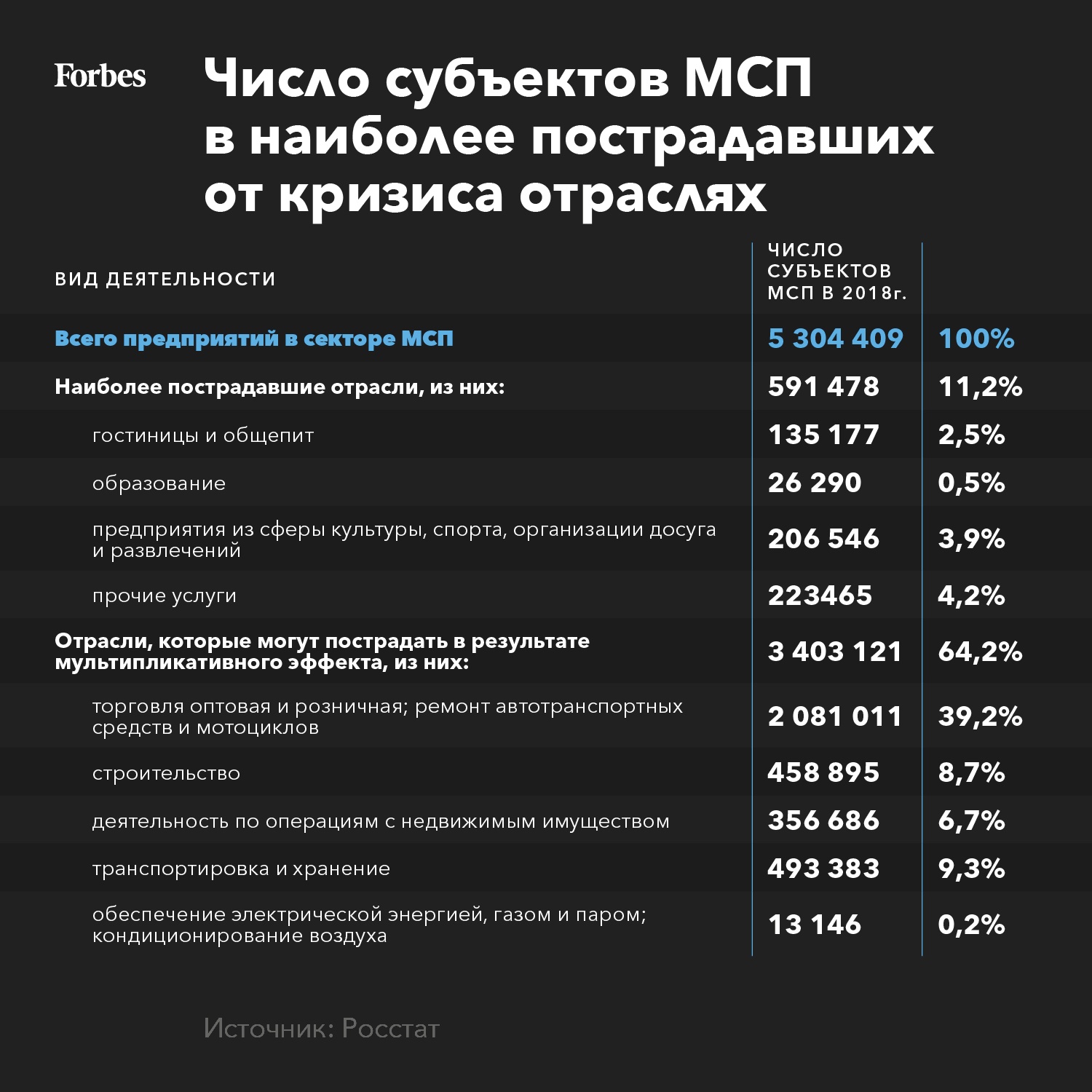 Наиболее сильный удар пришелся на сектор малого и среднего предпринимательства (МСП): рестораны, гостиницы, салоны красоты и парикмахерские, развлечения, спорт, туризм, розничные непродовольственные магазины. Фактически спрос на услуги указанных отраслей в условиях карантина упал в разы. Соответственно упала и выручка, тогда как обязательные затраты остались неизменными: выплаты по кредитам, арендные платежи, заработная плата, налоги и социальные взносы. Возникший кассовый разрыв, вероятнее всего, приведет к массовым банкротствам.