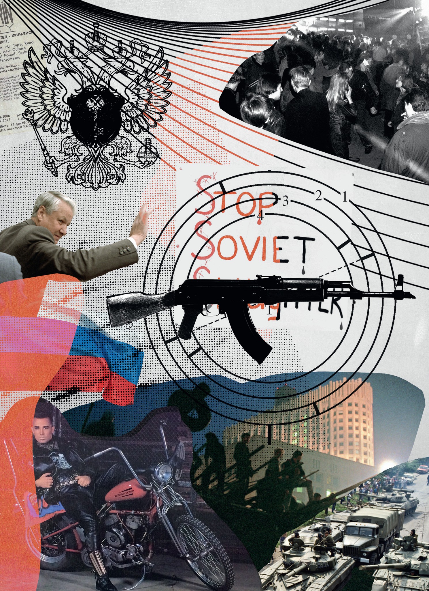 В августе в Москве – вооруженный путч. Группа высокопоставленных номенклатурщиков – председатель КГБ, министр обороны, премьер-министр, вице-президент и другие – объявляют себя Государственным комитетом по чрезвычайному положению. ГКЧП изолирует Горбачева на даче в Крыму и вводит в Москву четыре сотни танков; объявляет запрет на собрания, демонстрации и забастовки. У министра обороны Янаева, зачитывающего телеобращение ГКЧП к народу, трясутся руки – это наблюдает вся страна. У Белого дома собирается толпа сторонников Ельцина – в основном демократическая молодежь. Протестующие безоружны, но строят баррикады, на которых стоят бок о бок черносотенцы из общества «Память» (позднее организация была запрещена. – Esquire), Друзь, Макаревич, Лужков, Кинчев, Новодворская. В числе защитников Ельцина даже известный виолончелист Мстислав Ростропович, прилетевший из Парижа. Ростропович фотографируется с автоматом. Над зданием поднимают триколор.