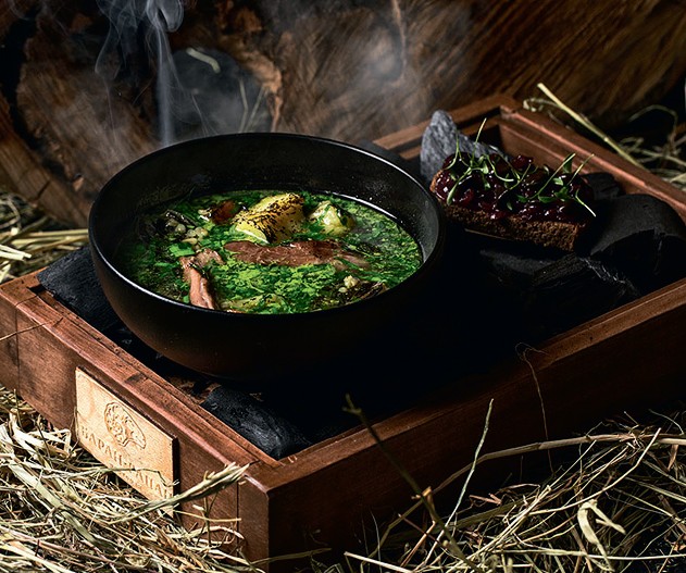 Свои рыбаки и фермеры, свои заповедные лесные уголки для сбора трав и кореньев, своя коптильня и даже собственная чайная плантация в Дагомысе. Одним словом, все для того, чтобы предложить гостям любопытнейшее меню на основе локальных продуктов: пироги из рапанов, барабулька под соусом из адыгейского сыра, баранина с муссом из каштанов, мороженое из мацони с фейхоа.
