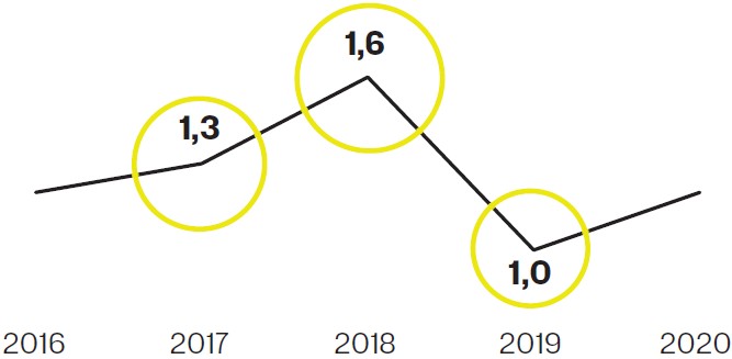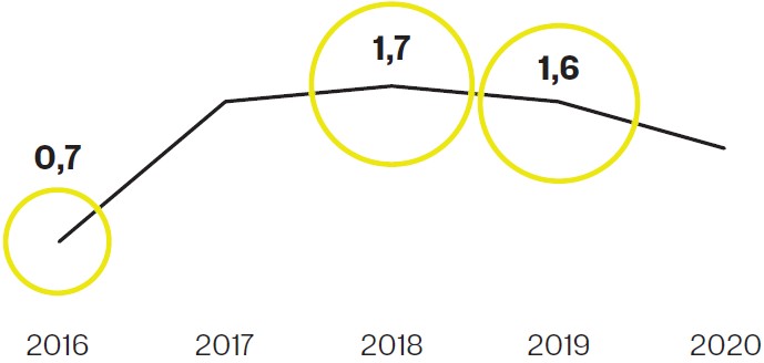 Статистика 37% составил рост выручки Yandex N. V. в 2019 году в рублевом выражении.