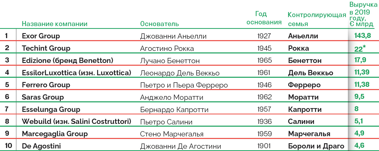 Многие достижения бренда Made in Italy — от автомобилей и продуктов питания до одежды и предметов роскоши — имеют одну общую черту. Это семейные предприятия. Forbes составил рейтинг 20 крупнейших компаний, принадлежащих итальянским семьям.