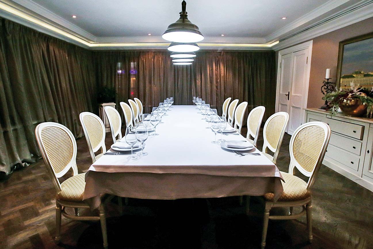 «Там была полная разруха, треш и пошлятина, — описывает в интервью Forbes свое первое посещение особняка на улице Солженицына Алина Ротенберг, на тот момент супруга Игоря Ротенберга. — Посреди двора был какой-то ужаснейший фонтан. Мы ходили по объекту и удивлялись, как можно было его в такое состояние привести». Алине, профессиональному дизайнеру интерьеров, было поручено курировать проект, создать концепцию будущего ресторана попросили Аркадия Новикова. Он объяснил собственникам будущего ресторана, что заведение, работающее только для своих, обречено на провал, и настоял, чтобы сделать его доступным для всех. По словам Алины Ротенберг, ресторанный комплекс в трехэтажном особняке XVIII века и двух его пристройках пришлось создавать практически с нуля: «Восстанавливали полы, лестницы; здание является памятником архитектуры, поэтому даже лепнину делали после утверждения в Госкомнаследии. Вывезли горы мусора, в подвале в ходе ремонта обнаружились остатки какого-то казино». Казино, надо отметить, было не простое, а одно из первых игорных заведений России, открытое при Московском коммерческом клубе, который создал советский «Интурист» в 1988 году.