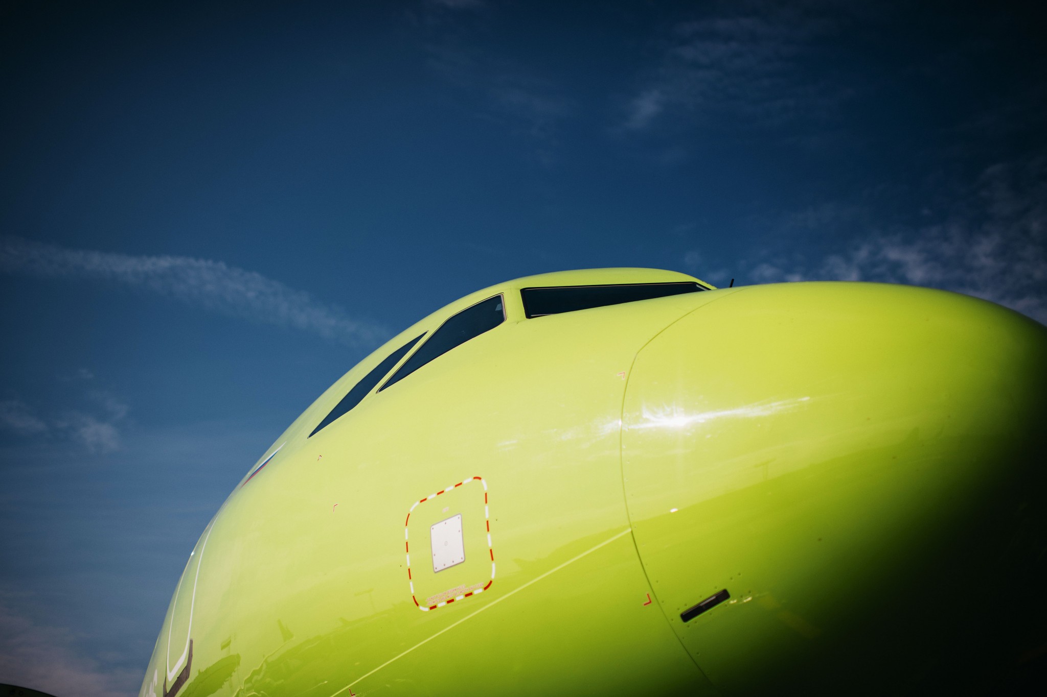 На летном поле московского аэропорта Домодедово выстроились борта Airbus и Embraer в салатовых ливреях (раскраске). Здесь место стоянки воздушных судов авиакомпании «Сибирь», работающей под брендом S7 Airlines (№75 в рейтинге 200 крупнейших частных компаний). Встречаются и машины, у которых салатовый только хвост, а фюзеляж белый: это символизирует принадлежность компании к международному альянсу Oneworld, в который входят такие крупные перевозчики, как American Airlines, British Airways, Cathay Pacific, Finnair, Iberia, Japan Airlines и др.