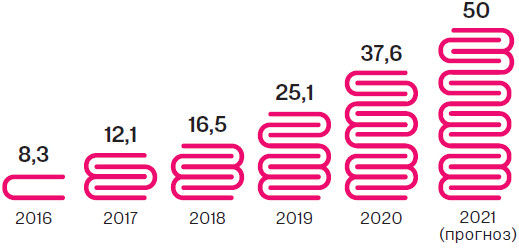 Объем рынка онлайн-видеосервисов, ₽ млрд