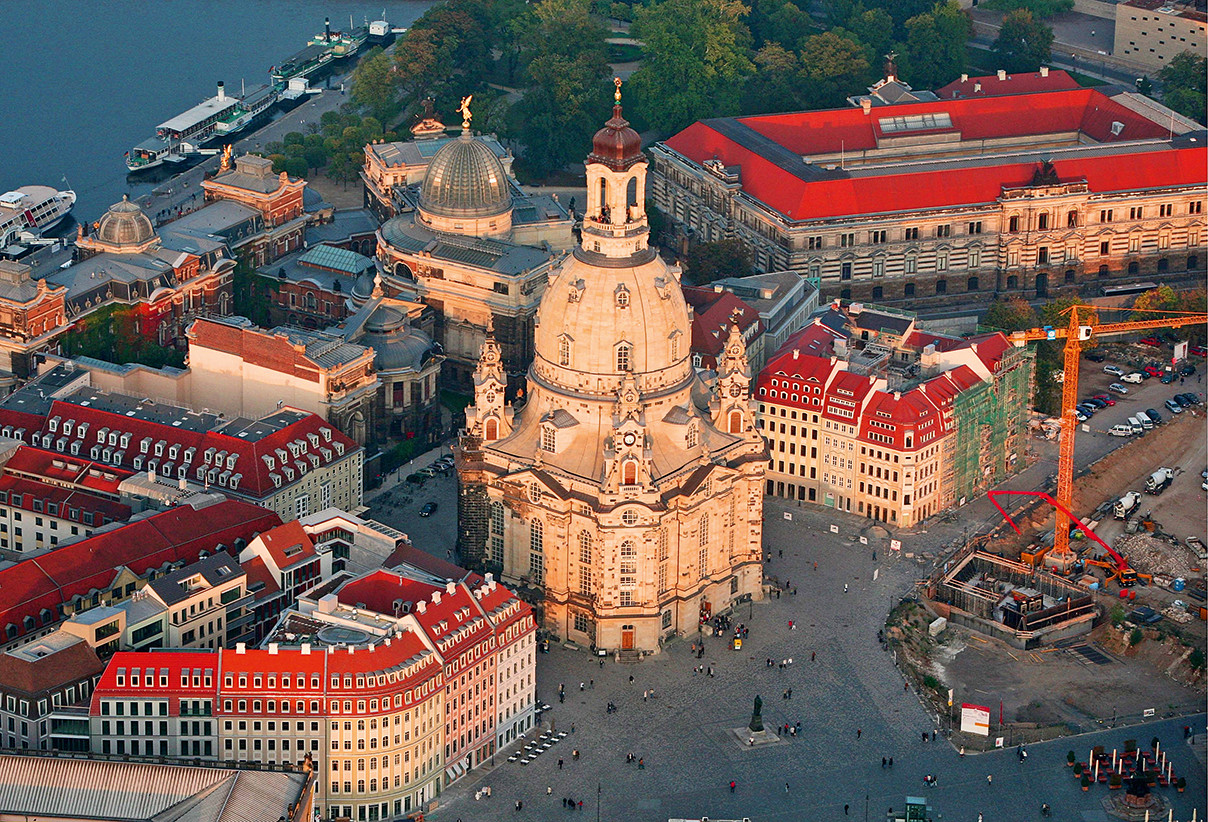 Восстановленная церковь Фрауенкирхе в Дрездене. Больше 50 лет после войны она стояла в руинах