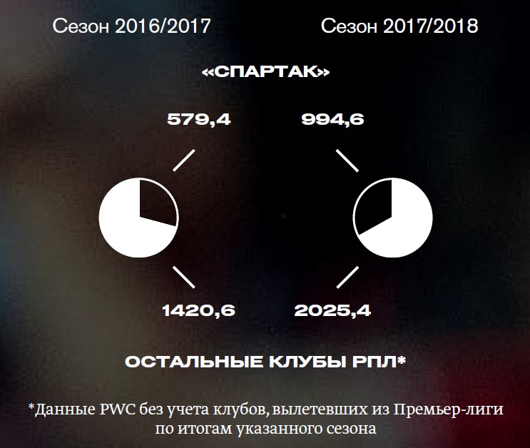 В 2018-м «Спартак» первым в российском футболе решился опубликовать данные о своей коммерческой деятельности. Летом вышел увесистый буклет «Путь к чемпионству» по итогам трех сезонов (до 2016/2017) с небольшим разделом «Финансы». В декабре 2018-го клуб представил полноценный отчет за сезон 2017/2018. 16 страниц финансовых диаграмм убеждают, что чемпионство пошло на пользу экономике «Спартака». Forbes выбрал самые показательные цифры и попросил коммерческого директора клуба Александра Атаманенко их прокомментировать.