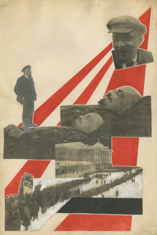 Композиция работы строится на восходящем движении красных лучей — слева направо, снизу вверх. От нескончаемого потока людей, вышедших отдать дань памяти погибшему, наш взгляд сначала поднимается к бездыханному телу Ленина. Затем — к улыбающемуся лицу вождя мирового пролетариата, оставившего позади свою материальную оболочку: почти религиозный образ, по-отечески оглядывающий оставшихся позади последователей. Не случайно во ВХУТЕМАСе Родченко преподавал именно композицию — ее понимание и построение для него всегда было ключевым.