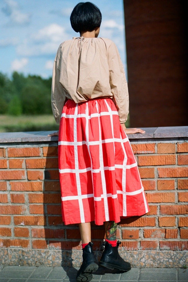 На этот раз перед нами — Эля Винокурова, которую запросто можно встретить в переулках Столешки. «Я работаю в мотокафе «Энтузиаст», скоро будет уже шесть лет как. Бутерброды в форме ромбика вырезаю, пиво с пенкой наливаю, снимаю для наших мероприятий, а вскоре хочу выпустить небольшой бланк-буклет», — скромно рассказывает о себе Эля. Она любит ловить на фотографиях искренние взгляды людей на улицах, все свободное время проводит в мастерской Nina Donis, где учится шить. Эля рассказала Vogue о своей любви к модным пенсионерам и замерзшей реке Лене.