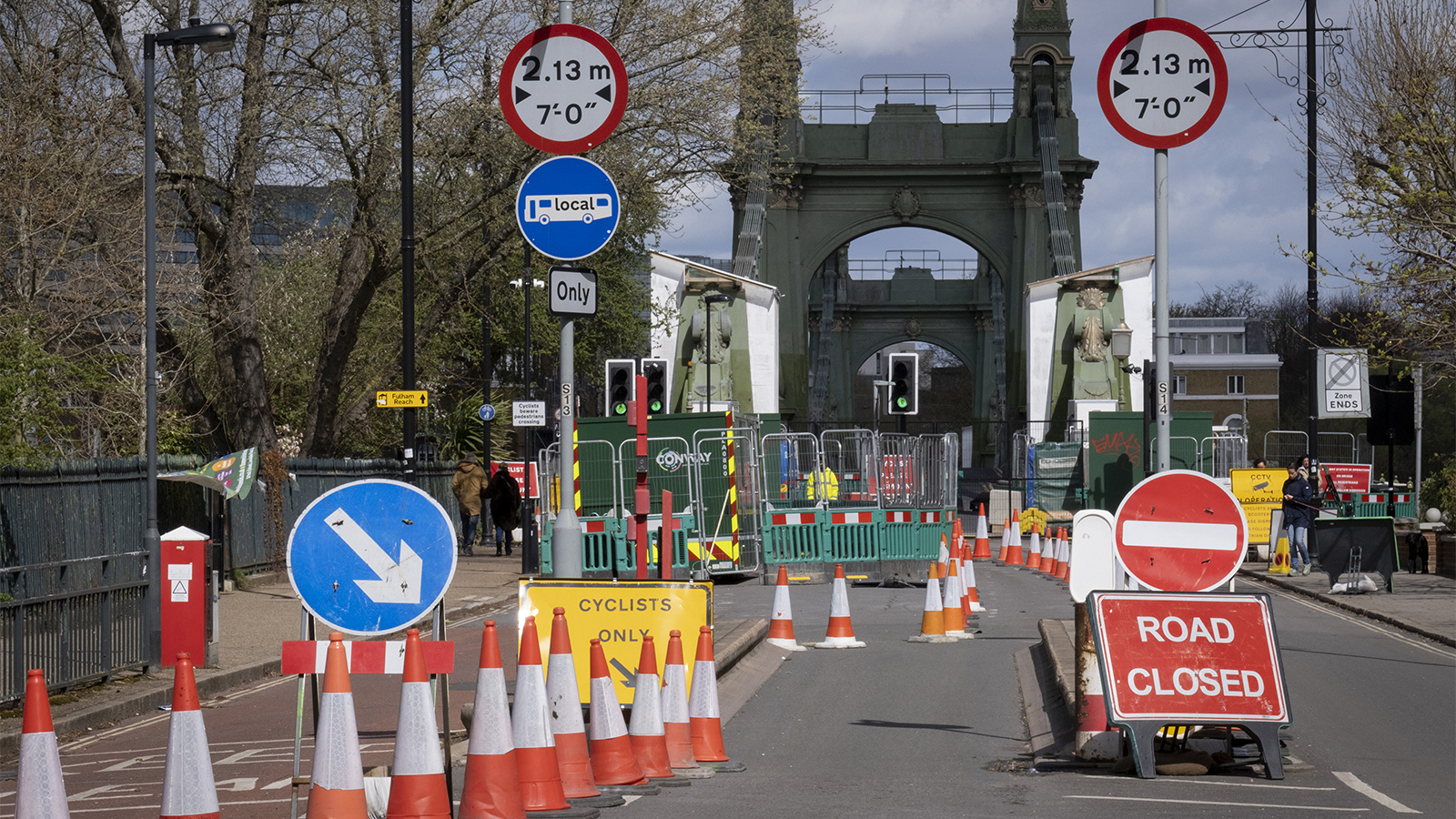 После долгой работы и планирования утром 5 августа 2001 года Анкром с группой друзей собрались на намеченном месте. Чтобы провернуть операцию, художник постригся и купил комплект рабочей одежды, оранжевый жилет и защитную каску. Чтобы избежать подозрений, которые могли бы привести к его аресту, он даже наклеил на свой грузовик магнитную метку, чтобы тот выглядел как транспорт какого-нибудь подрядчика Калтранса — транспортного департамента Калифорнии. С помощью лестницы Анкром поднялся на переходный мостик в десятке метров над автострадой и за полчаса прикрепил свой знак. Все это время он опасался, что может попасться, а еще больше — что уронит какой-нибудь инструмент на мчащиеся внизу автомобили. Но в итоге процедура прошла без сучка и задоринки, и никто ничего не узнал.