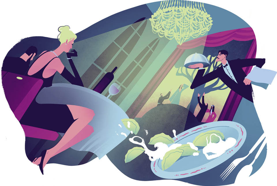 Хорошо помню, что с самого детства слово «ресторан» затейливо мерцало в моем сознании. Оно звучало торжественно, оно пахло свеженачищенной обувью и духами «Красная Москва». Но в этом слове различался также и некий оттенок комизма, заимствованный, конечно, из советских кинокомедий, где фигурировали смешные и часто неуклюжие официанты с салфетками, перекинутыми через руку, с проборами и усиками. Они там все путали и роняли на пол. И, самое главное, обслуживали посетителей мучительно долго. Но этот комизм существовал как-то сам по себе, ничуть не колебля мою заветную мечту — побывать в ресторане. Крахмальная скатерть, хрустальная солонка, высокий потолок, яркая люстра, принарядившиеся посетители, строгие, но справедливые официанты, оркестр, швейцар с генеральскими лампасами…