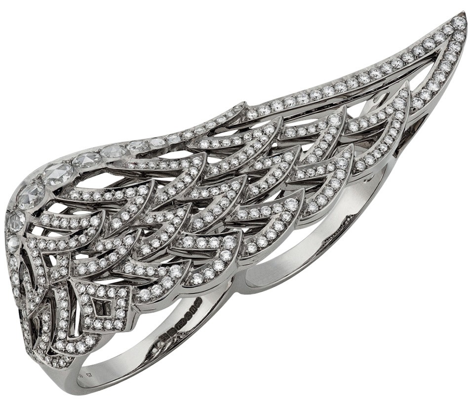 Стоило вам обрадоваться, что шум вокруг бракосочетания Виндзоров наконец-то утих, как назревает новая свадьба. Теперь уже ваша собственная. Чтобы дама сердца почувствовала себя на седьмом небе, принесите ей на крыльях любви украшение бренда Garrard, созданное ювелирами британской короны и авторами знаменитого кольца принцессы Дианы. Это бриллиантовое крыло из юбилейной коллекции The Wings заслуживает звания самого изящного кастета, когда-либо появлявшегося
