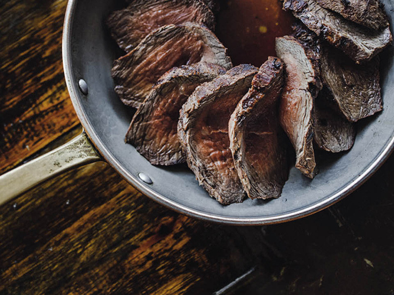 Идеолог ресторана Тахир Холикбердиев — одновременно апологет кубанского мяса от небольших местных производителей, он же поборник этичного потребления «от рожек до ножек». Поэтому в меню масса субпродуктов и непремиальных отрубов. Вы и их заказывайте, но главное все-таки — кубанский стейк: огромный кусок мяса, местная версия знаменитого стейка по-флорентийски.