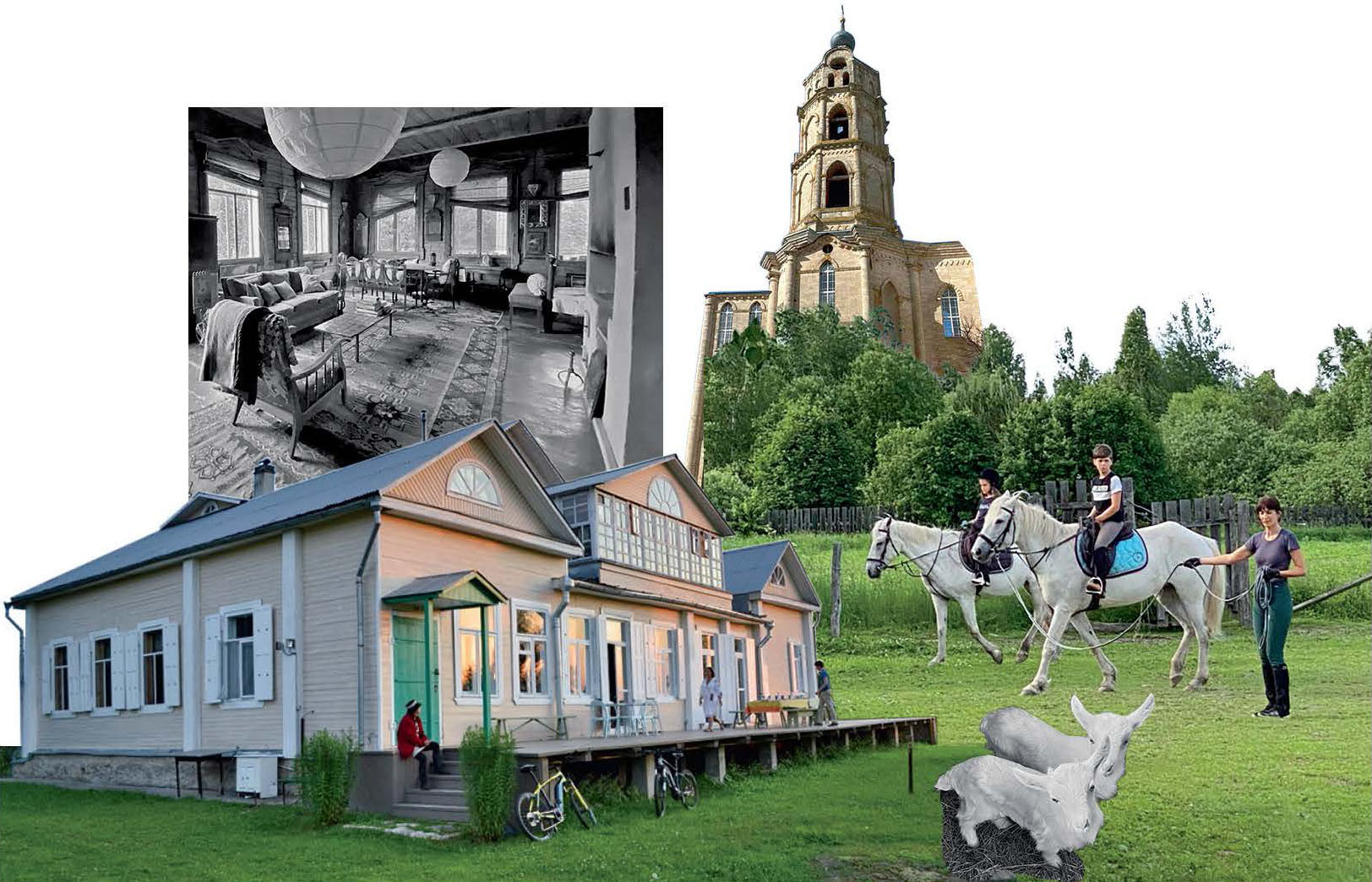Француженка с русскими корнями Ирэн Коммо решила обосноваться в Российской глубинке еще в конце 1990-х. Выбор Ирэн пал на Рязанскую область, где она присмотрела пару старых дореволюционных строений, выкупила их и отреставрировала. Две бывшие сельские школы превратились в один большой дом с мезонином, по-французски выверенными интерьерами, с любовью собранными по окрестным деревням чугунками и резными веретенами и атмосферой сибаритской русской дачи. Поначалу в гости к Ирэн приезжали друзья из Франции и России, но со временем она решила открыть двери для всех желающих. В Петрушово можно не только остановиться с ночевкой и провести время в приятной компании, но и вкусить беззаботной деревенской жизни: сходить на местный рынок, вдоволь нагуляться и покататься на лошадях.