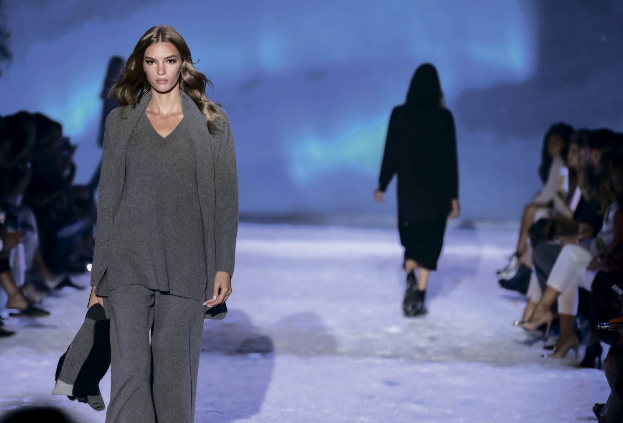 На прошлой неделе в Вероне прошел показ осенне-зимней коллекции Falconeri! На этот раз штаб-квартира итальянской марки, где по традиции и проходят шоу, превратилась в арктическую пустыню. Вместо подиума – снежная тропинка посреди ледяного ущелья, обрамленная хвойными растениями. Вместо декораций – северное сияние на фоне. А гости первых рядов разместились на искусственных льдинах! Сама коллекция в этом сезоне пополнилась кашемировыми изделиями непривычных для бренда оттенков, в том числе салатовым, ягодно-красным и светло-голубым. А блузы и юбки из шелка Falconeri выпустили в бронзовом, медном и