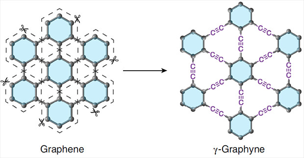 Углерод — чемпион по количеству аллотропов среди всех элементов, он может быть в форме алмаза, графита, нанотрубок, фуллеренов и так далее. Если взять графит и выбрать из него один слой, получится другая модификация углерода — графен. В нем все атомы образуют три химические связи со своими соседями — две одинарные и одну двойную. А если в графене часть атомов углерода поменять так, чтобы они образовывали одну тройную и одну одинарную связь, это будет уже другая модификация — графин.