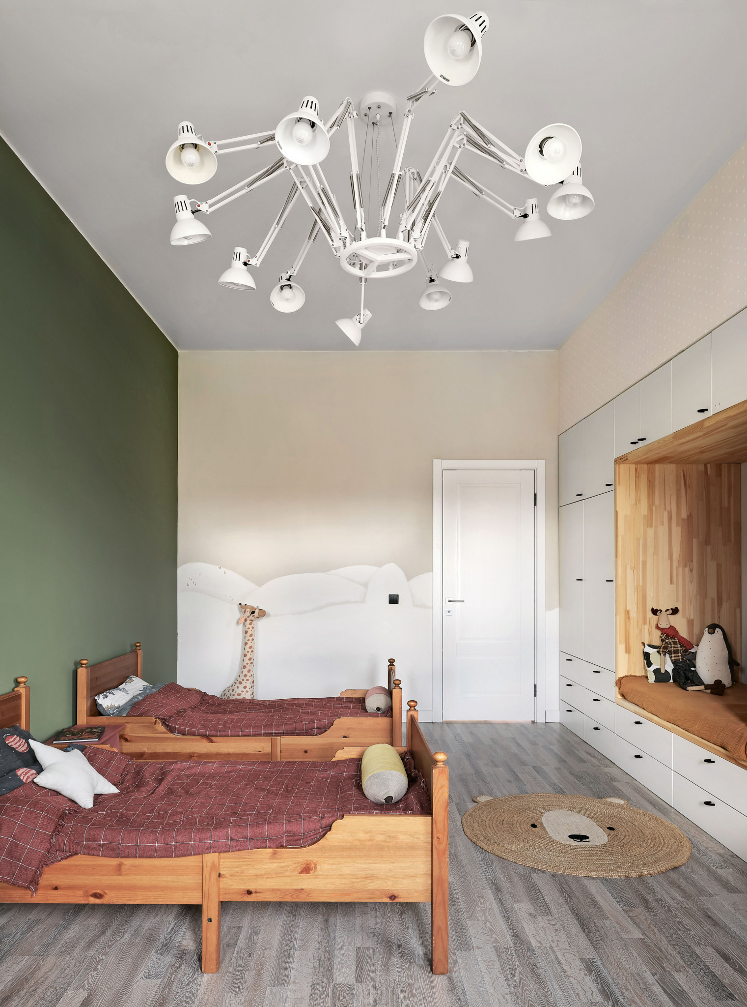 Деревянные кровати, кресла из ротанга, хлопковый текстиль соседствуют в детских комнатах с корпусной мебелью из экологически безопасной ДСП. Принцип модульности даёт широкий выбор по размерам и функционалу