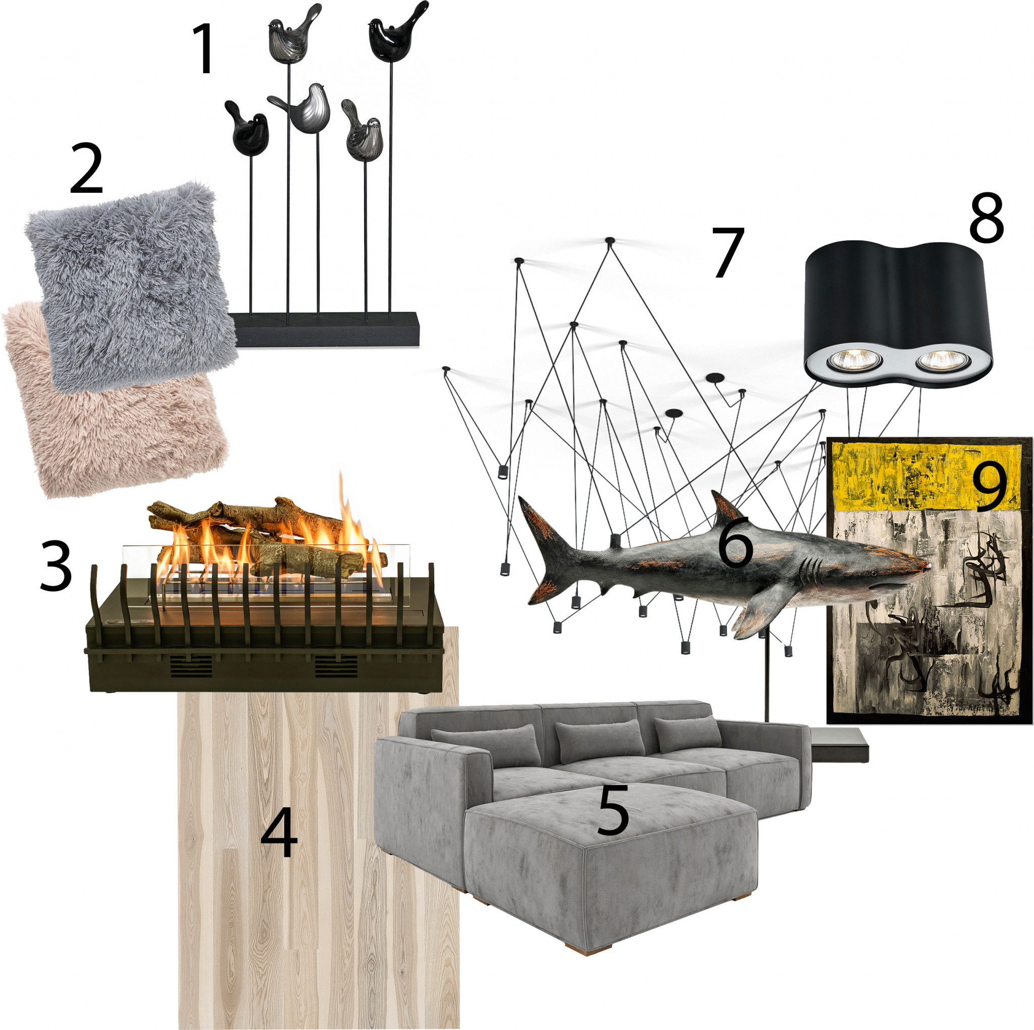 - Светильники: люстра Mooоi АКСЕССУАРЫ: шторы, подушки «Времена года»