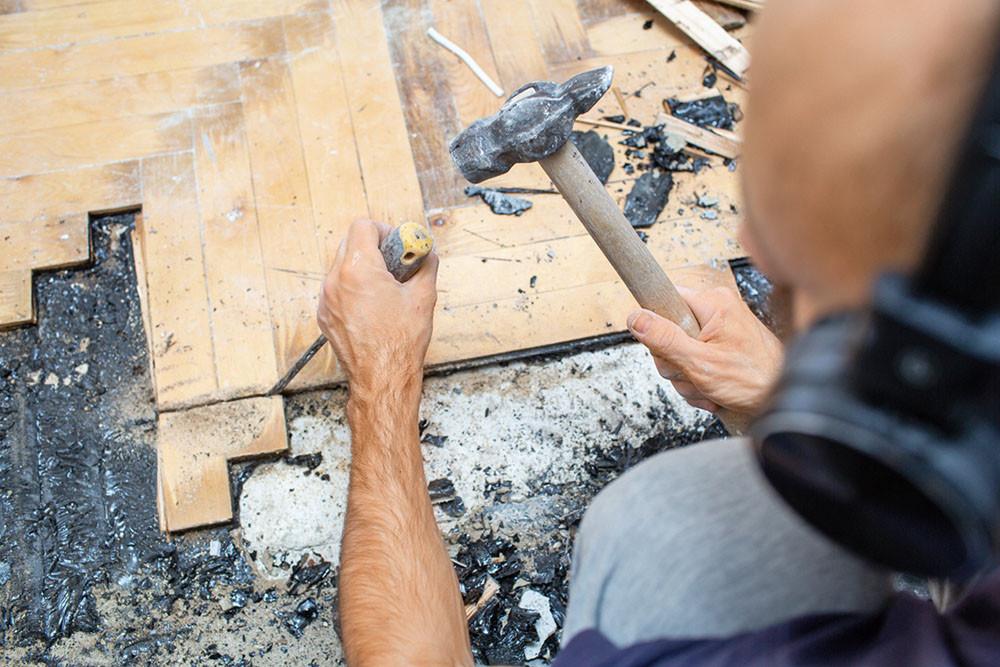 Отдельно стоит упомянуть демонтаж пола в старом жилом фонде с деревянными перекрытиями. Старые доски снимаются с несущих балок и заменяются на новые. Из гигиенических соображений рекомендуется также замена звукоизоляционной и утепляющей засыпки.