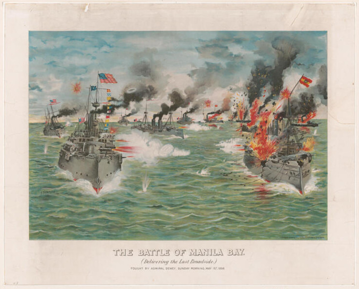 Апофеозом этой стремительной и провальной войны стал знаменитый эпизод с захватом Гуама — небольшого острова в Тихом океане. 20 июня 1898 года американский бронепалубный крейсер «Чарльстон» дал несколько предупредительных залпов по острову, которым испанцы владели более двухсот лет. Испанский гарнизон, не знавший, что их страна уже в состоянии войны с США, решил, что американские товарищи приветствуют их салютом. Ответив на этот «дружественный жест» собственным торжественным залпом, испанская делегация на лодке подплыла к «Чарльстону» — поприветствовать своих западных партнеров. Однако, поднявшись на борт, испанцы выяснили, что их правительства, оказывается, уже почти два месяца как воюют, а «Чарльстон» прибыл для захвата острова. Немая сцена на лодке городничего закончилась добровольной сдачей в плен всей делегации вместе с гарнизоном и подписанием условий капитуляции.