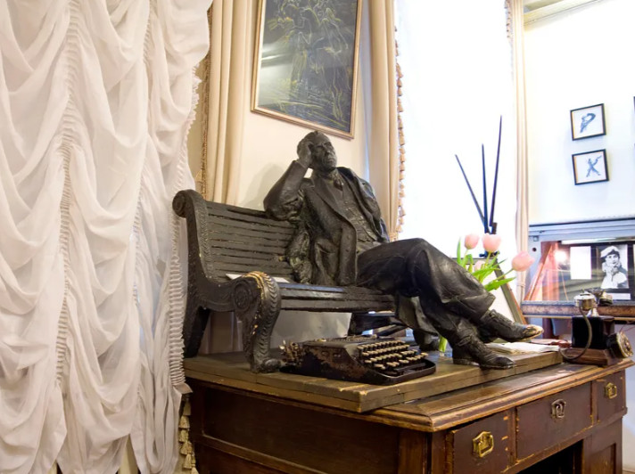 Дом на Большой Садовой, 10, в Москве до революции был доходным: квартиры в нем сдавались в аренду. При советской власти просторные помещения превратились в коммуналки для сотрудников типографий. Среди пролетариата в одной из комнат жил Михаил Булгаков: именно в этом доме он позже поселил дьявольскую свиту в романе «Мастер и Маргарита», а образ Аннушки, пролившей масло, списал с одной из своих соседок.