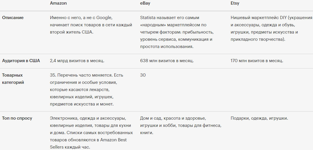 Топ маркетплейсов в США для МСБ