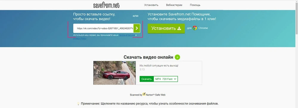 • зайдите на сайт SaveFrom.net;