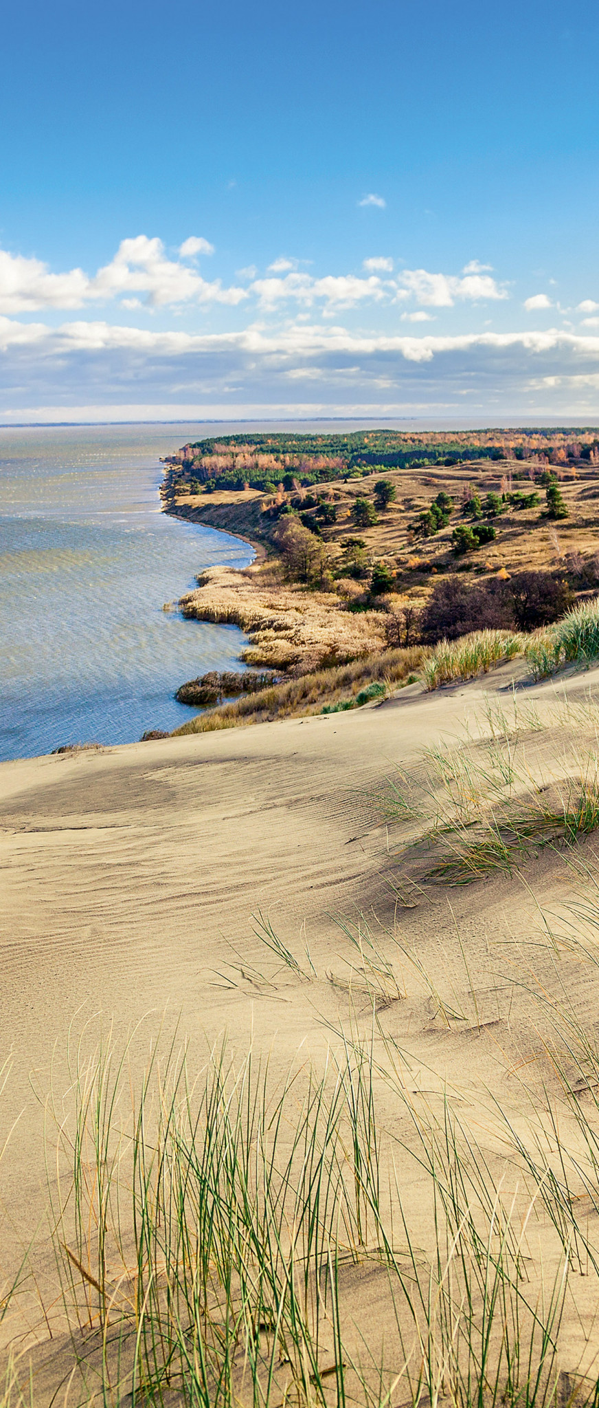 С одной стороны — Балтийское море, с другой — Куршский залив. Их разделяют песчаные дюны, тихие заводи, болота и зеленые массивы. Здесь «танцует» лес, гнездятся птицы, а со смотровых площадок можно увидеть кусочек соседнего государства.