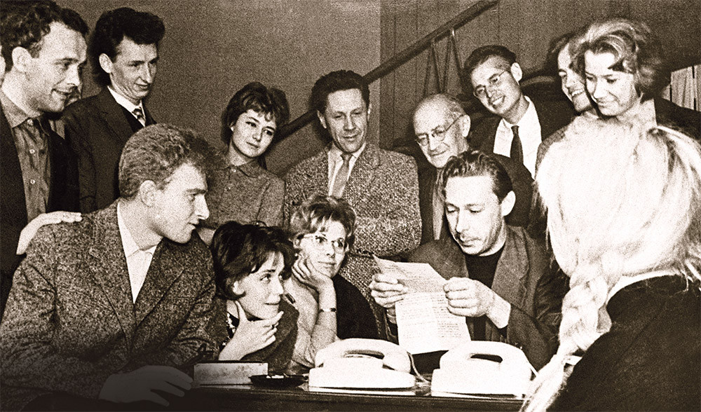 Премьера спектакля «Вечно живые» состоялась пятнадцатого апреля 1956 года на сцене филиала МХАТа. Зрители не расходились. Они снова и снова требовали, чтобы мы вышли на сцену кланяться, а потом толпой поджидали нас на выходе из театра. Так мы доказали, что нужны молодому поколению и, значит, имеем право на существование. И МХАТ взял студию на договор и заключил с нами трудовые соглашения. Главное, что мы получили свою площадку. Директор МХАТа Солодовников разрешил, чтобы мы играли на сцене их филиала по понедельникам, когда у театра выходной. Мы могли давать спектакль строго раз в неделю. Именно на этой сцене спустя четыре года поставили «Голого короля». И если до 1960-го к нам просто выстраивались очереди, то теперь, чтобы купить билет, к кассам театра стали приходить ночевать с раскладушками. Это была настоящая политическая сатира, где речь вроде бы шла о сказочном государстве, но все было узнаваемо. И почти после каждой фразы зрители давали это понять аплодисментами.