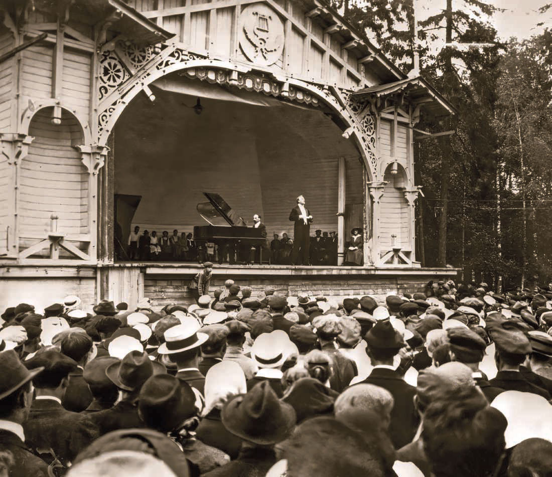 Меценат Павел Соколов в 1911 году отстроил новый театр на 500 мест, который назвали Летним. Как рассказывали местные жители, Федор Шаляпин поспорил с плотниками, что они не успеют к открытию сезона, и в результате те справились за 52 дня. Певцу пришлось поставить выигравшим ящик шампанского. Театр был выполнен в стиле модерн. Он имел полукруглый фасад, который поддерживали шесть колонн. Такой красоты никакие дачные поселки не видели! Настоящая глубокая сцена, а перед ней — место для оркестра. Здесь был также партер, где проводились балы. Были даже ложи, что не свойственно летним театрам. Соколов специально построил электростанцию, обеспечивавшую театр энергией, — по тем временам это было еще в диковинку.