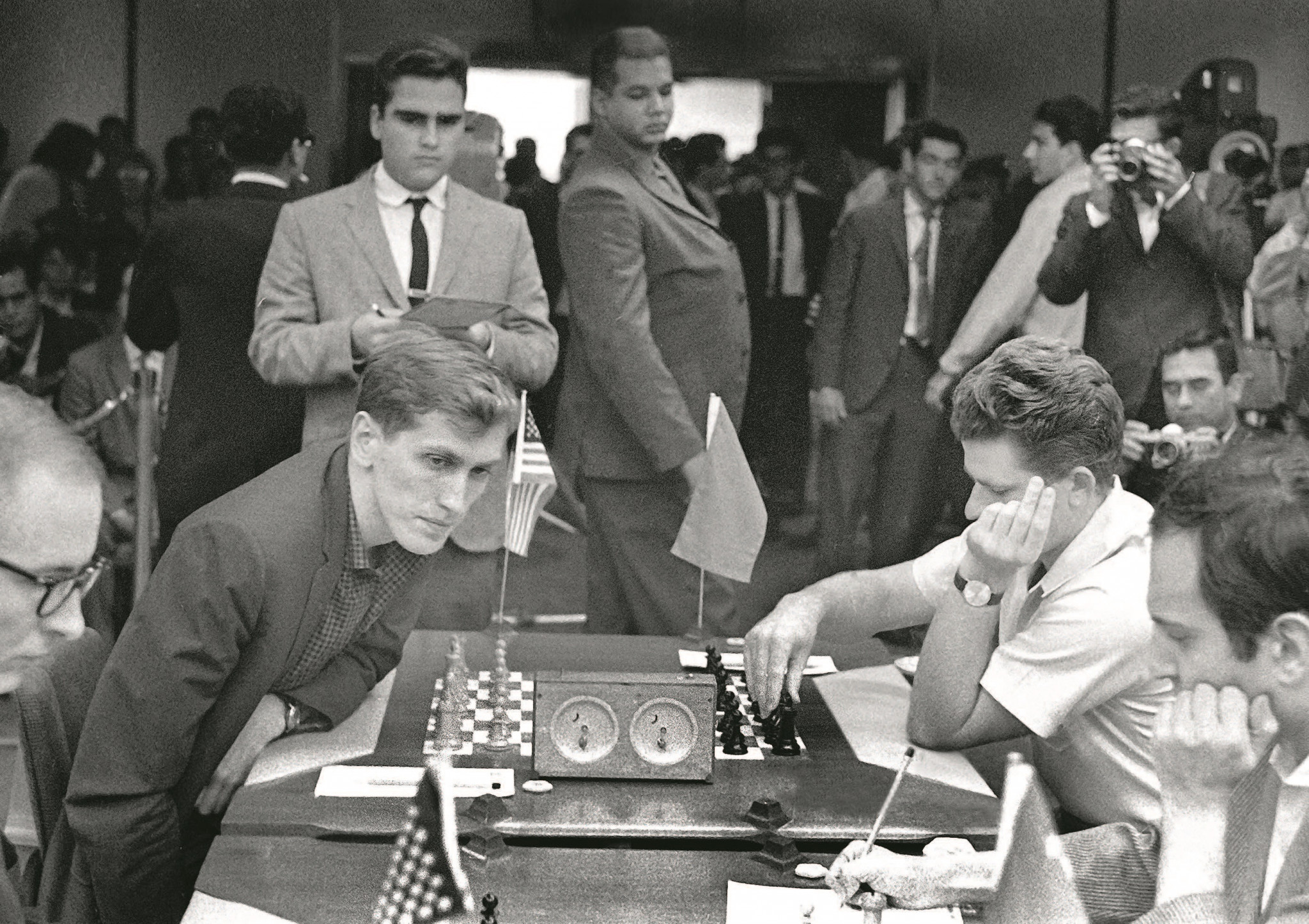 Партии матча за шахматную корону, проходившего летом 1972 года в Рейкьявике между Борисом Спасским и Бобби Фишером, впервые транслировались в прямом эфире. За состязанием, затаив дыхание, следил весь мир. Однако поединок, даже не успев начаться, обернулся чередой скандалов. Эксцентричный американец, Спасский называл его «сбрендившим ребенком», в ультимативной форме выдвигал организаторам все новые и новые требования: увеличить гонорар до немыслимых размеров, перенести место встречи, убрать телекамеры и измерить уровень шума в зале. Фишер забраковал даже шахматный стол — слишком высок и доску — на ней, мол, много крапинок.