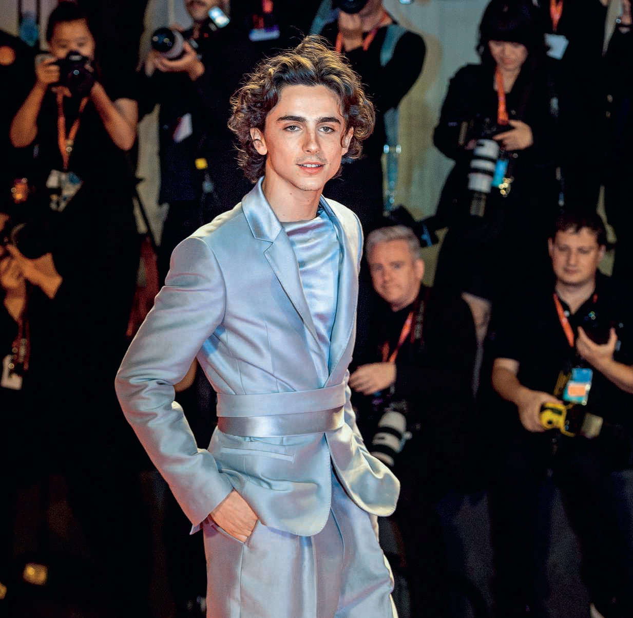 Тимоти Шаламе — это тонкая угловатая фигура, нежное лицо, кажется, не знающее бритвы, копна непослушных волос, эльфийский и даже, пожалуй, андрогинный облик, романтичная хрупкость и цветовая контрастность, вызывающая в памяти образы итальянского Возрождения.