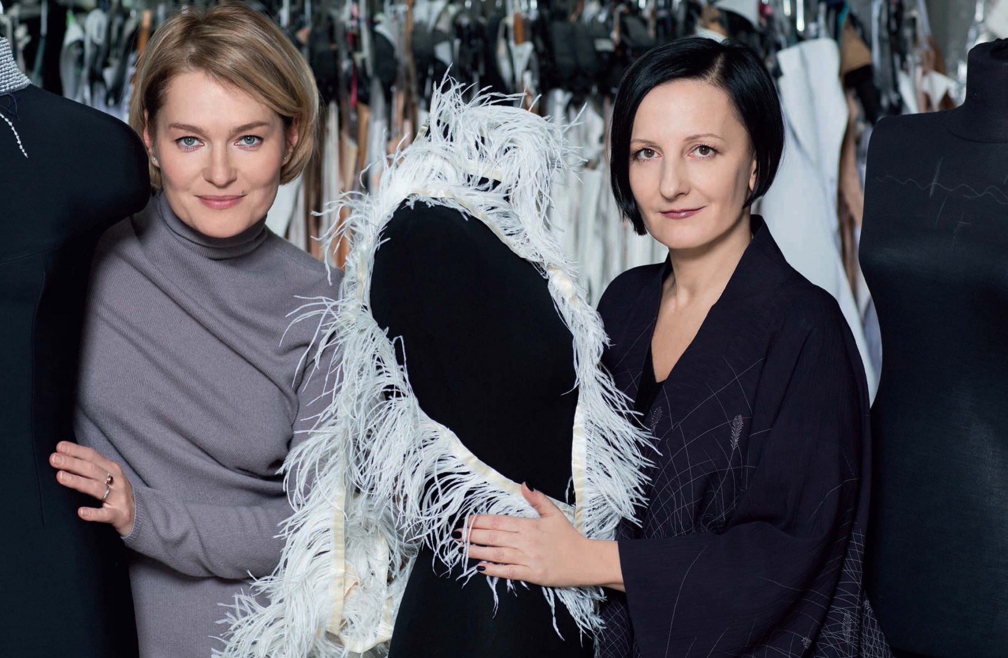 В мастерскую Tegin на «Винзаводе» актриса Виктория Толстоганова и дизайнер Светлана Тегин приехали вместе: знакомы они много лет, рабочие графики у обеих напряженные, так что любая возможность лишний раз пообщаться — радость